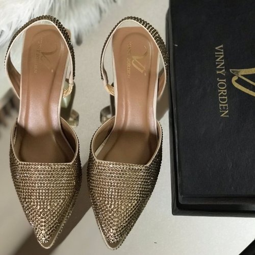 Elegant Embellished Pointed-Toe Slingback Heels Step into sophistication with these stunning embellished slingback heels. Designed with a sleek pointed toe and encrusted with shimmering stones, these heels effortlessly blend elegance and glamour. The stylish sculpted heel adds a modern edge, while the cushioned insole ensures comfort for extended wear. Perfect for evening events, parties, or special occasions, these heels will elevate any outfit with timeless charm and luxurious detail.